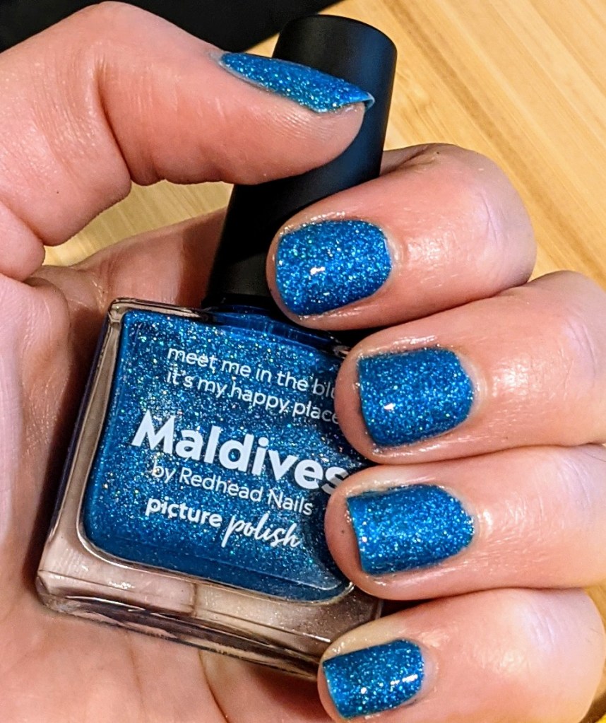 Maldives is a scattered holo warm teal polish that reminds me of the beach and the ocean (check out the website for a more true to color picture – I couldn’t capture it correctly for some reason and want to make sure you get to see how gorgeous the color is!). It was fully opaque in 2 coats, and the finish is really unique for my collection. It is so perfect for summer for me and reminds me of a tropical vacation that I hopefully will be able to take one day.