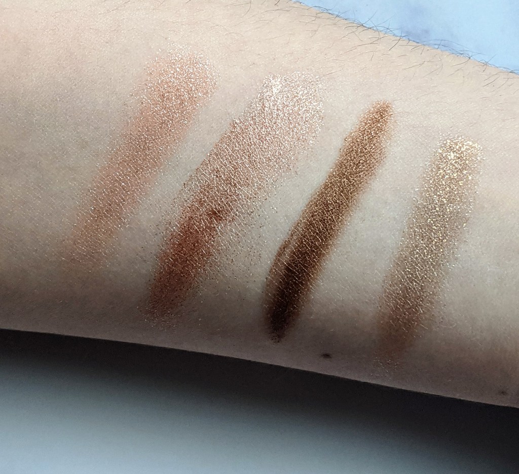 Taboo – This is one of the best crease shades I’ve found for my skin tone. It’s a more yellow toned brown that works really well with olive skin. Like the other mattes, it’s incredibly smooth, pigmented, and blendable. I was honestly surprised how much I appreciated this shade.
