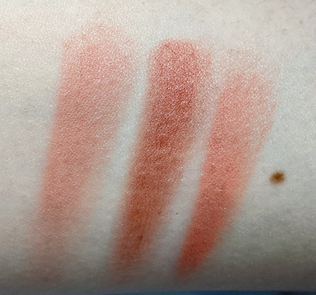 Swatches of the Salt New York Blushes in Rose and Spice and KW Blush in Sun Touched