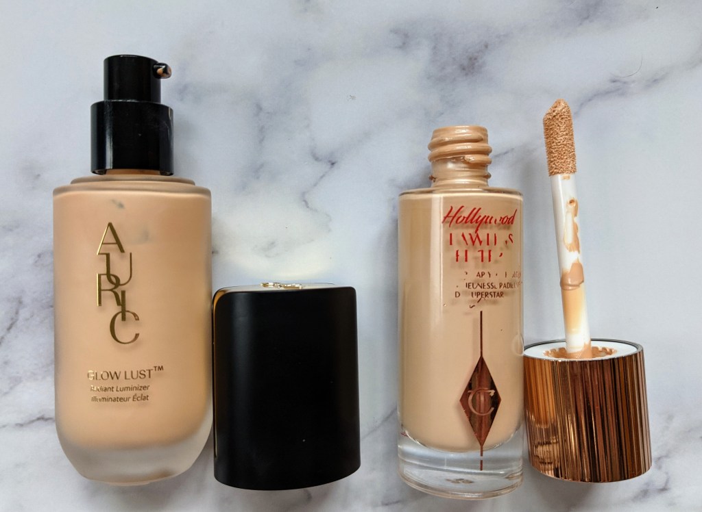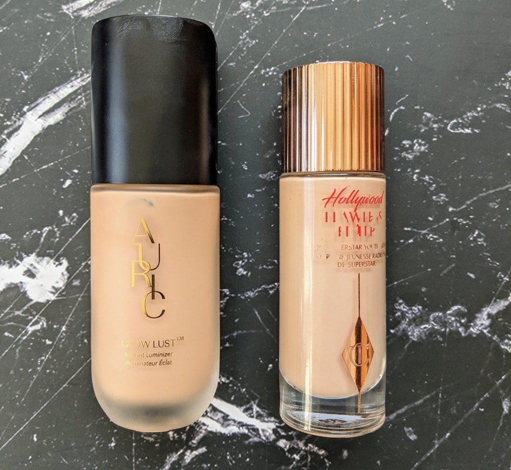 I wanted to wait to do this comparison post until I really had time to use the Glow Lust long enough to really be able to talk through the nuanced differences between it and the Hollywood Flawless Filter. For those unfamiliar, Auric is a new brand recently launched by Samantha Ravndahl and their Glow Lust product is often compared to the Hollywood Flawless Filter, so I wanted to compare their price, packaging, and formulas to help anyone who is trying to decide between them! Before I get into it, if you have one, you don’t need the other. I’m going to talk through how I use them both in my routine, but I want to say upfront that they aren’t different enough that you absolutely need both.