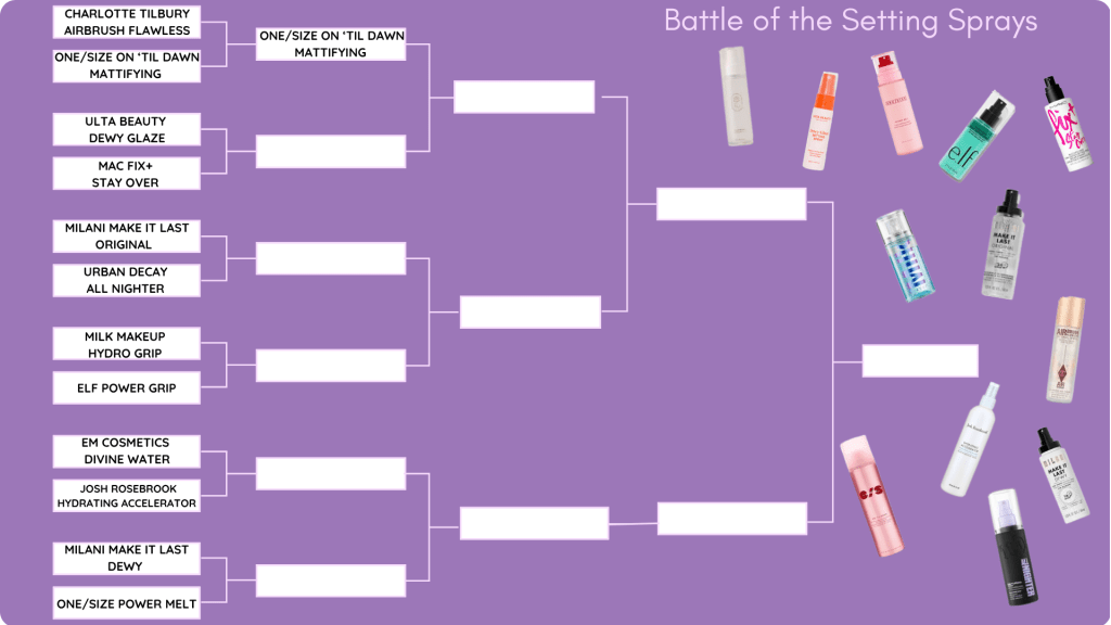 Setting Spray Showdown Round 1, Match 1 – One/Size On ’Til Dawn Mattifying Setting Spray vs. Charlotte Tilbury Airbrush Flawless Setting Spray
